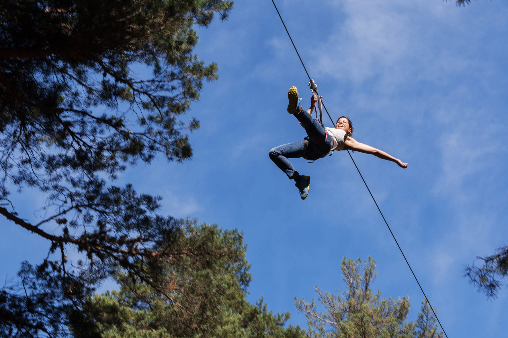 Más de 100 juegos, 22 TIROLINAS y 50 dinámicas de Team Building te esperan en los árboles!