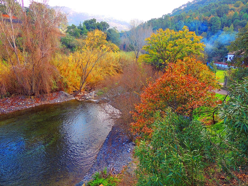 En la Serranía de Ronda, el Valle del Genal se convierte en un tapiz ardiente cada noviembre. Castaños, nogales y robles transforman el paisaje en una marea de cobre y naranja. Los pueblos blancos de Igualeja, Pujerra y Júzcar —el famoso pueblo azul— sirven como punto de partida para distintas rutas. La más popular: el sendero Pujerra–Júzcar (12 km), con vistas espectaculares y parada obligada para degustar castañas asadas.